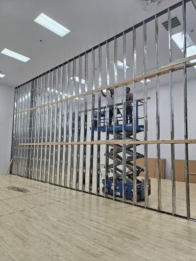 6" metal stud walls with wood lateral supports added, for a racquet ball courts in gym
